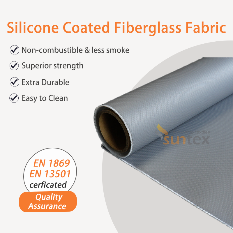 Tissu en fibre de verre enduit de silicone ignifuge 850g/m2, tissu en fibre de verre à haute teneur en silice, résistant à la chaleur